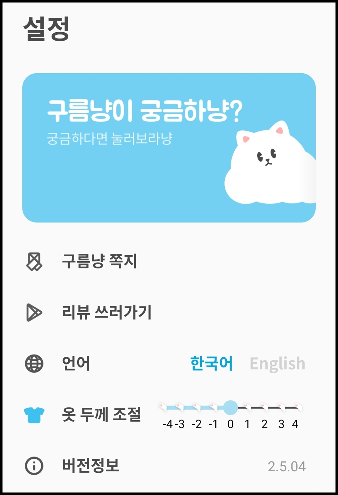 구름냥 날씨 어플 리뷰