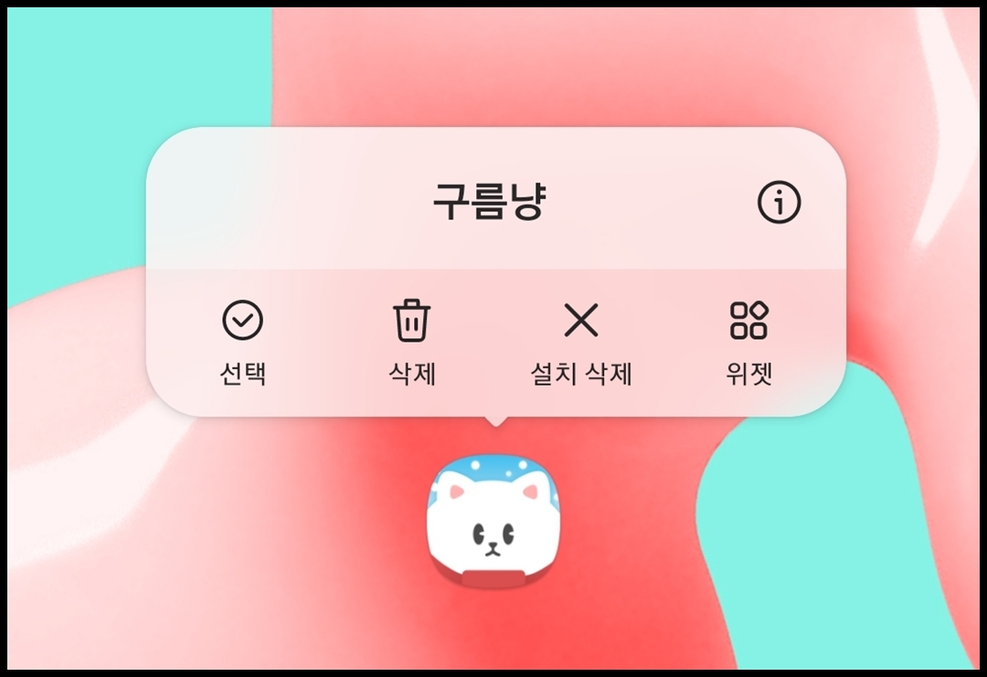 구름냥 날씨 어플을 위젯도 제공합니다. 총 5가지 종류의 위젯을 제공하고 있습니다. 위젯은 핸드폰 바탕화면에서 구름냥 어플 아이콘을 꾹 누르면 상단에 관련 메뉴가 뜨는데, 그 중 위젯을 선택하면 됩니다. 쉽게 말하면 어플을 삭제할 때 아이콘을 누르고 있는 것 처럼 누르고 있으면 위젯 메뉴를 발견할 수 있습니다.