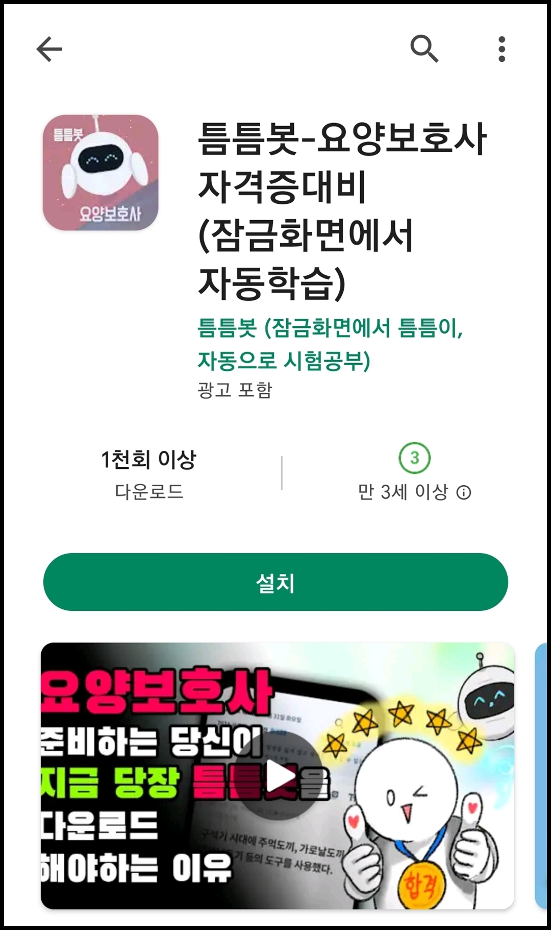 틈틈봇-요양보호사 자격증대비 (잠금화면에서 자동학습) 어플 설치 및 다운로드